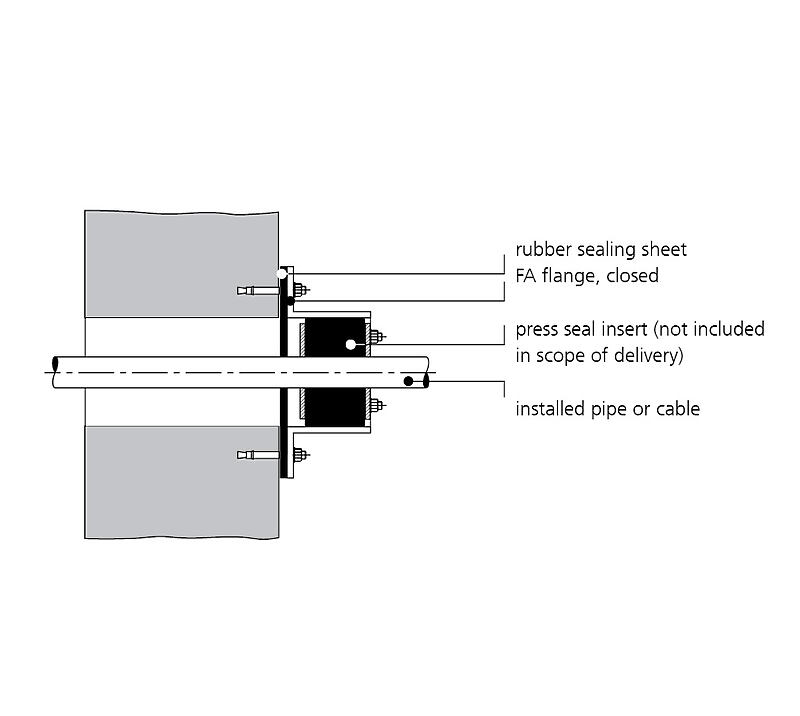 The flange is supplied in square design up to wall sleeve inner diameter 150 mm and in round design from wall sleeve inner diameter 200 mm.
