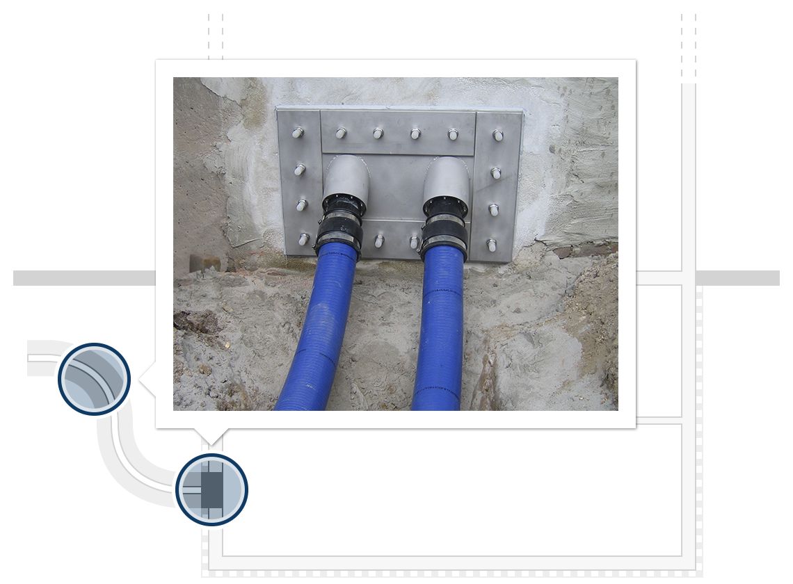 Para el sellado de tuberías recién instaladas o anteriormente colocadas en los taladros de núcleo o en los casquillos de pared. Disponible para cualquier tamaño de tubería convencional.